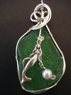 Sea glass pendants - one in sterling, one in gold filled wire. On top a sea glass necklace with sterling wire wrapped pendant. You can find us on Etsy at ttp://sistersjewelrydesign.etsy.com/